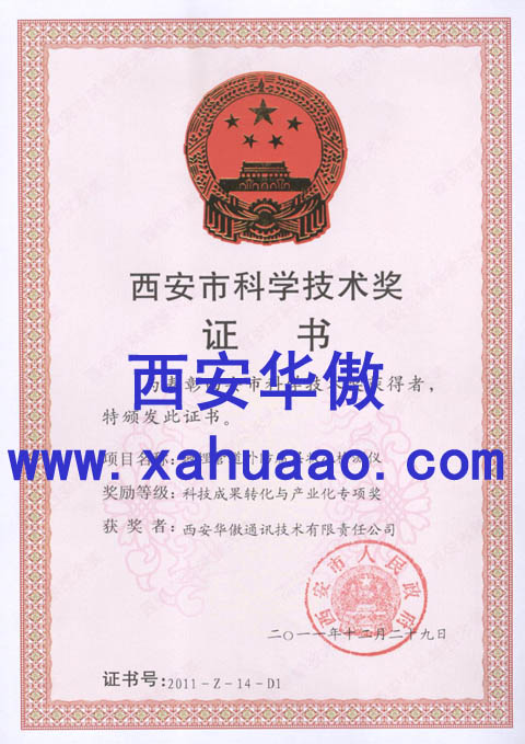 热烈祝贺西安华傲通讯技术有限责任公司地埋管道外防腐层状况检测仪获得了西安市政府颁发的2011年度西安市科学技术进步奖奖项,这是对西安华傲公司的科技创新能力的又一次肯定。西安华傲自从创立以来,不断强调自主创新,公司上下尤其重视科技创新、知识创新。多年来华傲公司始终保持科研经费所占经费比例大于公司总产值的百分之十以上,奉行高投入大产出,取得了丰硕的科技成果,先后开发出了地下管线探测仪、漏水检测仪、管道防腐层检漏仪等全套产品。迄今为止公司共取得发明专利一项、实用新型专利四项、外观专利四项、软件著作权十几项;获得国家创新基金项目支持一次;被评为高新技术企业、双软企业;获得西安市科学技术进步奖一次。